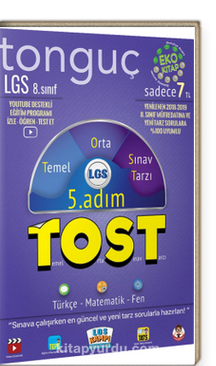 TOST seven 2005 Tayfa burada mı? O halde şimdi bizi iyi dinle! LGS’de başarıyı yakalaman için mükemmel bir ürün hazırladık! Hem de 2018-2019 müfredatı ve ÖSYM’nin yeni tarzdaki soruları ile %100 uyumlu! “Tamam tost severim de, Tonguç LGS TOST nedir?” diye sorduğunu duyar gibiyiz. Hemen açıklayalım… TOST yani Temel, Orta, Sınav Tarzı sorulardan oluşan setimiz önündeki sınavda en büyük yardımcın olacak! TOST Fasiküllerini aylık olarak seninle buluşturmayı planlıyoruz. TOST 5. sayımız da Ocak ayı konularını kapsıyor. İçerisinde Türkçe, Matematik ve Fen Bilimleri dersleri bulunuyor. Senin için özel olarak hazırladığımız TOST Fasiimizin kullanımı ise oldukça kolay! Konular, yaz boyunca faydalandığın LGS Kampı videolarımız ile eş zamanlı olarak devam edecek. Kitabın sol üst tarafında yer alan karekodu okutarak Youtube üzeriküllernden konu anlatım videolarına erişebileceksin. Hem de ücretsiz olarak! Konulara dair hiçbir eksiğin kalmadığını garantiledikten sonra sıra TOST’unu yiyip bitirmede! Fasiküllerin sağ ve sol sayfalarında farklı düzeylere ait sorularla karşılaşacaksın. Sol tarafta yer alan sayfalarda Temel ve Orta seviyedeki sorularımız yer alıyor. Sağ taraftaki sayfada ise ÖSYM’nin sorduğu Sınav Tarzı soruları çözeceksin. Böylelikle sınavda karşına çıkabilecek her türlü soru tipini görmüş olacaksın! Tüm bu çalışma sürecinde Tonguç da TEPS uyumlu programı ile her an seninle olacak! Takıldığın sorularda ise TATS üzerinden video çözümlerine ulaşabileceksin. Hayallerindeki liseye yerleşmen için gereken her şey burada! LGS’de başarılı olmak için TOST’unu yemeyi unutma!