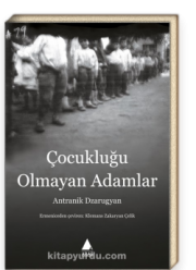 Bu kitap, üzerine titreyecek kimsesi olmayan, hayata çok erken adım atmak zorunda bırakılan yetim çocukların hikâyesi. Antranik Dzarugyan’ın ilk kez 1955’te Beyrut’ta Ermenice olarak yayımlanan ve tüm zamanların en çok okunan Ermenice kitaplarından biri olan Çocukluğu Olmayan Adamlar’ı, Birinci Dünya Savaşı sırasında Felaket’in kucağına itilen, açlığın ve mahrumiyetin gölgesinde çocukluklarını ve hatta insanlığa olan inancını yitiren Ermeni yetimlere odaklanıyor. 1915’in ölümcül rüzgârlarıyla Halep’e savrulan Dzarugyan, oradaki bir yetimhanede heba olmuş çocukluğunu kimi zaman tebessüm ettiren, kimi zaman ise yürek burkan olaylar eşliğinde, büyük bir canlılıkla anlatıyor. Boyundan büyük işler yapan ve hayattan en büyük payı kapmaya çalışan yetimler, yoksunluğu ve kimsesizliği iliklerine kadar hissediyorlar; ancak bu durum onların kendi eğlencelerini yaratmalarına ve kurallarını kendileri koydukları bir dünyada yaşamalarına asla mani olmuyor. Yaşanan trajedinin büyüklüğüne rağmen hayatı ucundan köşesinden yakalama uğraşı, bu dünyanın çarklarının bir şekilde dönmesini sağlıyor. Yitirilmiş masumiyetinin peşine düşen Dzarugyan, bir daha gelmeyecek çocukluğuna sesleniyor ve gözünü karartarak onu kendinden çalanlardan hesap soruyor.