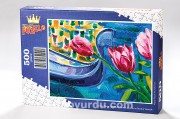 Pembe Laleler ve Gondol Venedik Ahşap Puzzle 500 Parça (UK12-D)